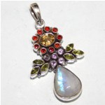 925 Sterling Silver Multi Gemstone Pendant Jewelry